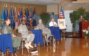 Brigadier Gen. Bradley Pray spoke to the Specialized Undergraduate Pilot Training class 08-15 in a ceremony held at Kaye Auditorium Friday. General Pray is the Deputy Director of Air, Space and Information Operations, Headquarters Air Mobility Command, Scott AFB, Ill. He is responsible for policy