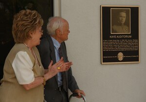 The building is the same, but the name has changed. Friday the base theater was named the Kaye Auditorium in honor of Capt. Sam Kaye, a World War I fighter pilot. Capt. Kaye, whose name is pronounced Coy, is also a native of Columbus, Miss. Capt. Kaye has four confirmed kills from WWI. Shortly after