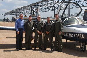 Major Gen. Steve Miller, Commandant of the Air War College, Maxwell AFB, Ala., was the keynote speaker for the graduation of Specialized Undergraduate Pilot Training Class 07-12 July 27. After delivering his sage words of career guidance to the newest class of Air Force pilots, the general took his
